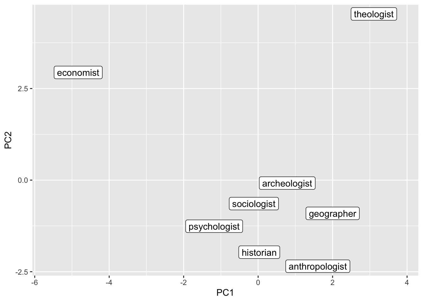 - Download different pretrained embeddings. Are the relationships of terms (e.g., the biases of different jobs, the PCA representation of the names and jobs) the same across models?